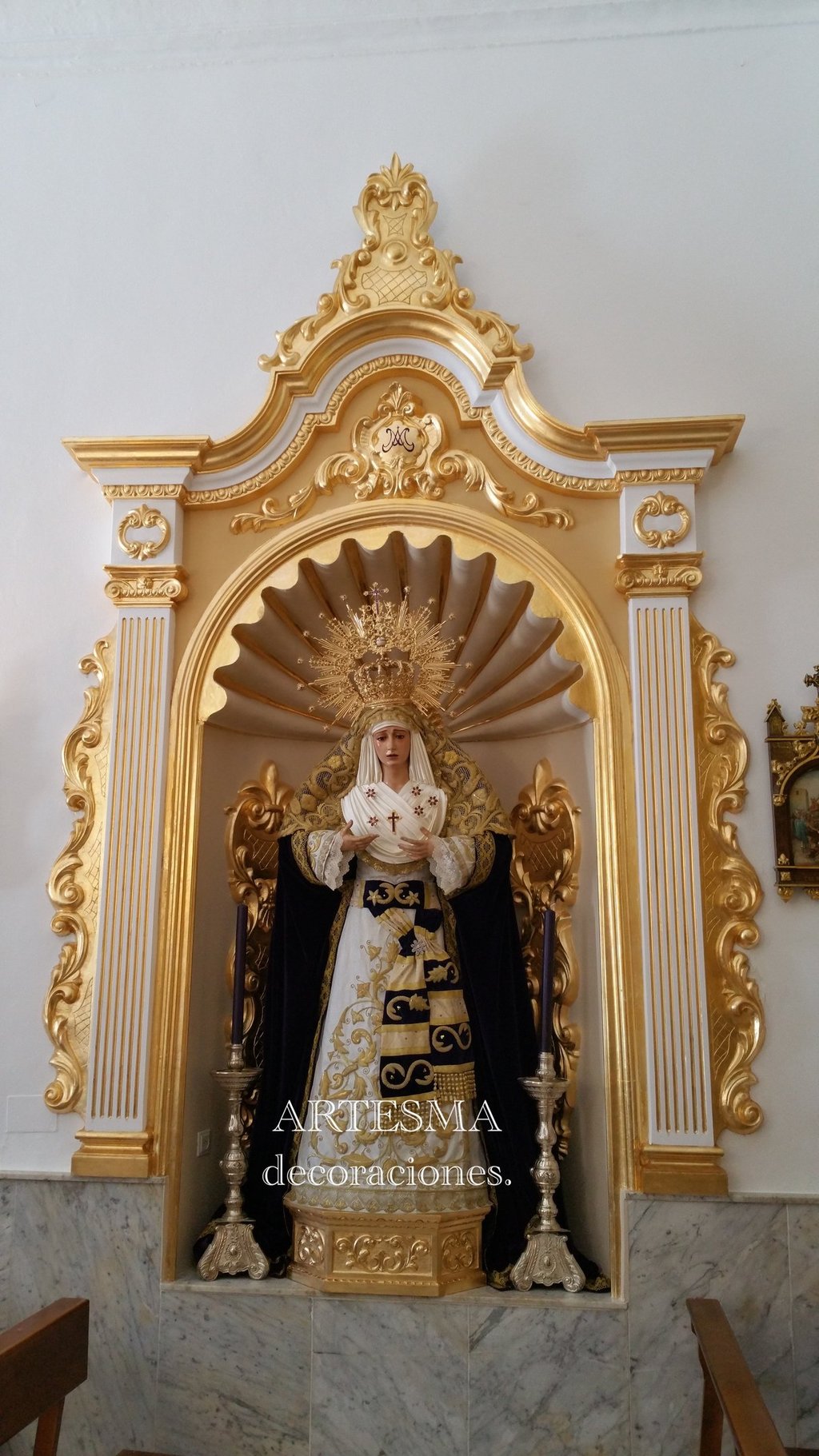 Diseño y ejecución artesanal del retablo VIRGEN DE LAS PENAS en fachada del CONVENTO HERMANAS DE LA CRUZ